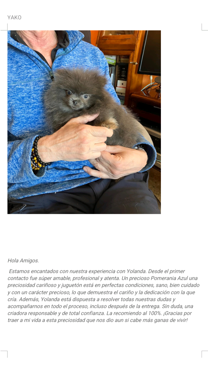 Soy Manuela tengo dos perritas de yolanda y encantada con ellas son super pequeñas. Y super cariñosas.Gracias yoli por todo 😍